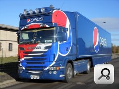 Noch rechtzeitig zum Weihnachtsgeschäft wurde ein neuentwickelter Promotion-LKW mit dem Logo der Firma PepsiCo fertiggestellt. Es handelt sich um einen LKW der Marke Scania. Das Fahrzeug ist mit einem V8-Motor und 560 PS ausgestattet. Vier Halogenscheinwerfer und zwei Signalhörner auf dem Führerhaus sorgen für das notwendige Licht bzw. Ton. Das gesamte Fahrzeug einschließlich Trailer hat ringsherum eine indirekte Beleuchtung, die bei Dämmerung das Gesamtbild des LKWs abrunden. Das Fahrzeug wird dazu eingesetzt, direkt vom LKW herunter vor den Supermärkten Ware zu verkaufen. Ein weiterer Promotion-LKW wird Ende November ausgeliefert und verfügt dann auch über Gasantrieb, um die PepsiCo-Produkte umweltschonend zu transportieren. Geplant ist, bis zum Halbjahr 2013 die gesamte LKW-Flotte auf Gasantrieb umzustellen.